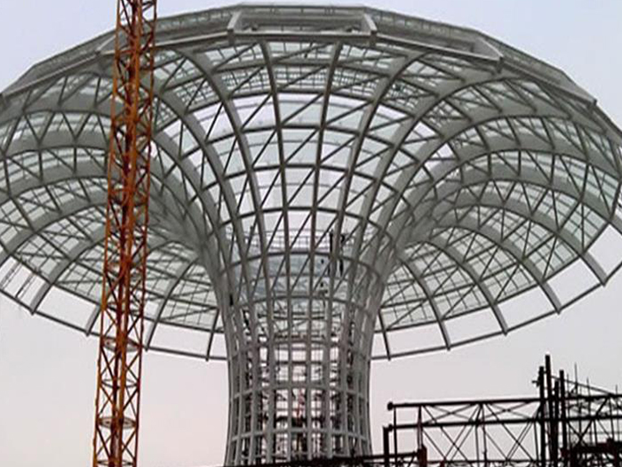 二、球形网架结构因其结构新颖,受力合理,自重轻、用钢量低等优点。如大型体育场馆球形兴义螺栓球网架、公共场馆球形网架、电厂兴义螺栓球网架、水泥工业球形网架、仓储物流球形网架、兴义干煤棚工业球形网架、兴义收费站兴义加油站球形网架、展览中心、影剧院、商场、航站楼、候车厅、工厂兴义车间、仓库、电视塔等球形螺栓球节点网架。国内球形网架结构主要分为:兴义焊接球节点网架及螺栓球节点网架两种。螺栓球节点网架其构件工厂内加工量较大,现场安装便捷,适用于现场工期紧,兴义施工条件、用电量受制约,网架形状复杂、兴义杆件定位困难的异形结构。螺栓球节点球形网架系统基本由兴义杆件、螺栓球、支撑支座等组成。按照节点形式可分为交叉兴义桁架体系、四角锥体系、三角锥体系等。支撑方式多为固定支座支撑。对于大面积、大跨度及有特殊受力或伸缩要求的网架结构可采用橡胶支座、滑移支座、球铰支座等支撑形式,以满足结构自身的受力稳定、均衡,便于内力释放等设计要求。